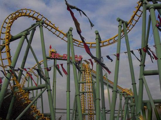 “哇,好刺激啊!”小王兴奋地喊道,他的手中还拿着一串糖葫芦,一边吃一边享受着过山车的速度与激情。